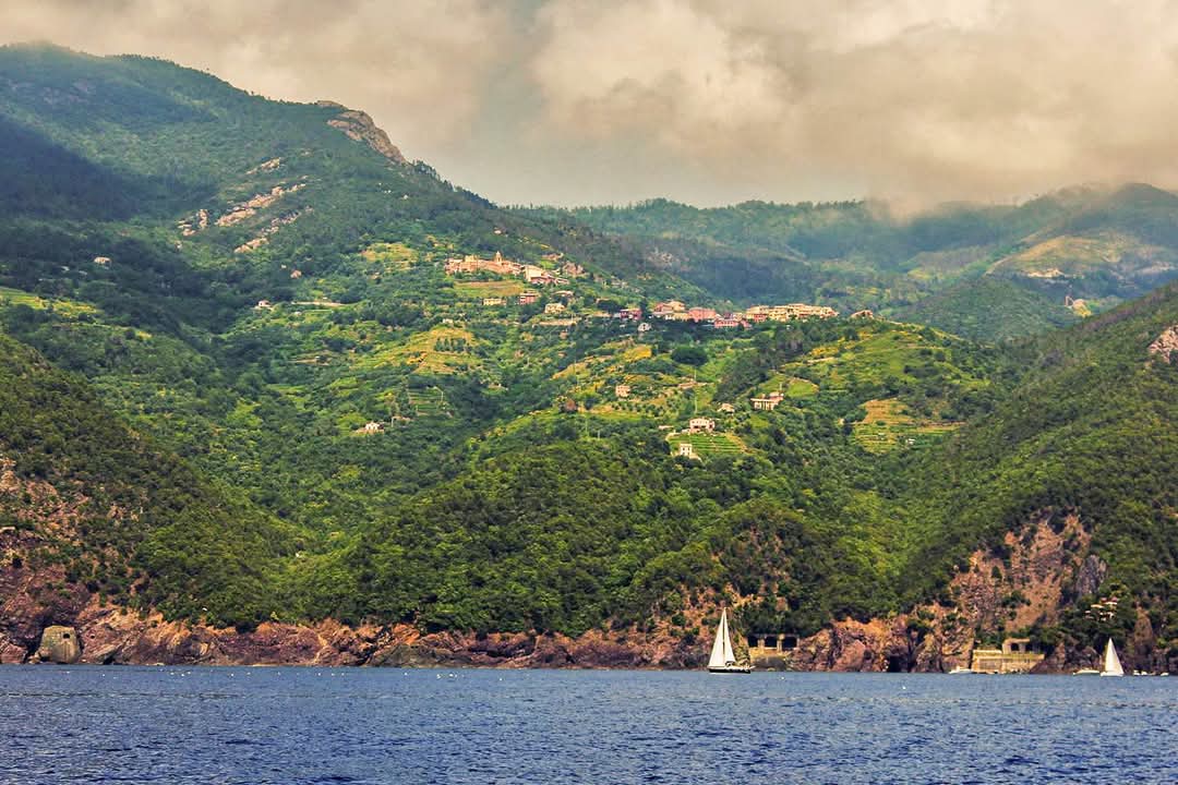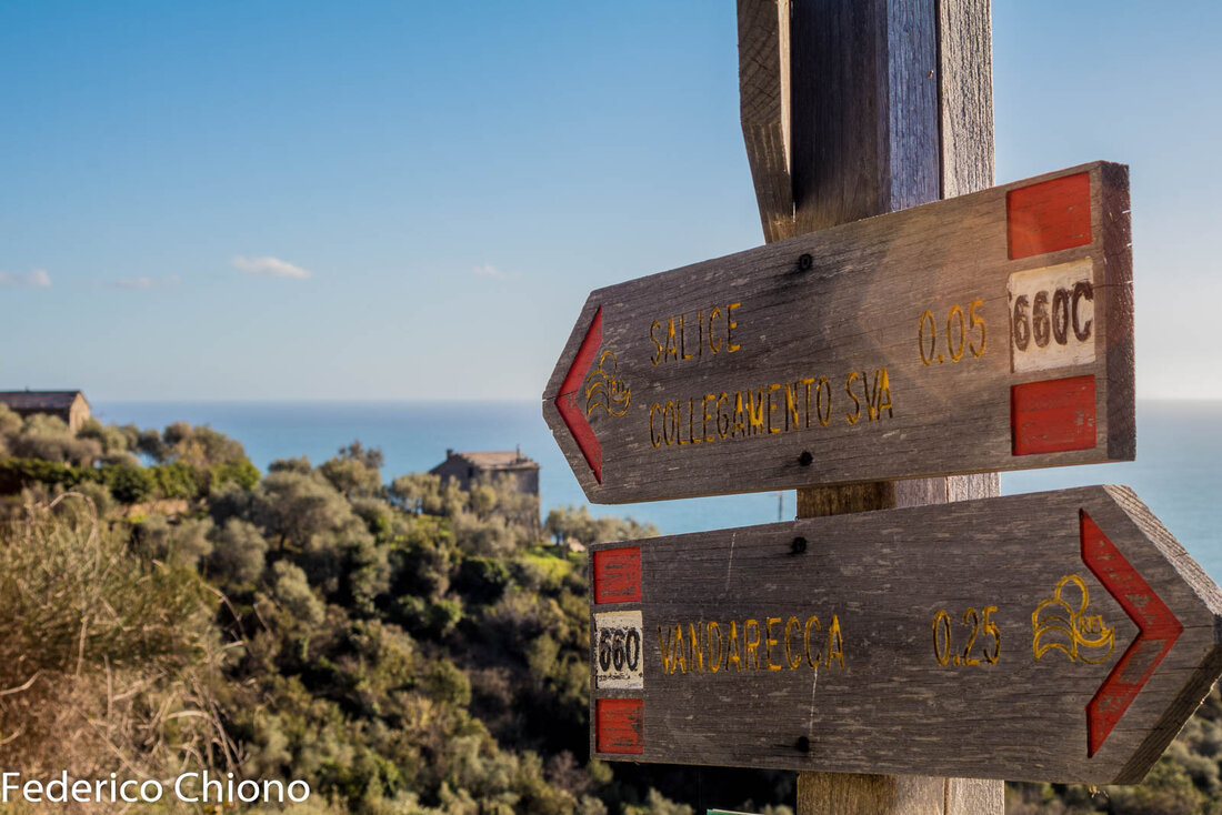 - San Giorgio (280 m s.l.m.), Costella (170 m s.l.m.) e Serra (75 m s.l.m.) sopra il golfo di Bonassola;